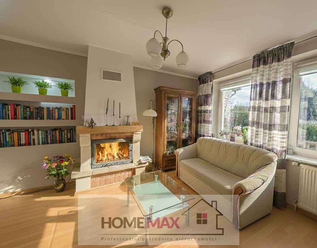 Sercem domu jest klimatyczny jasny salon z kominkiem oraz przestronna kuchnia z jadalnią .